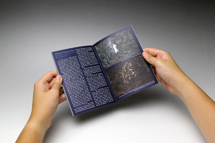 The Last Thing You See is a photographic exhibition exploring the limits of visibility and knowledge within the natural world. Blue, being the dominant colour in the exhibition, was the natural choice for the catalogue. The typographic treatment is a response to the concept of visibility running all throughout the exhibition.
